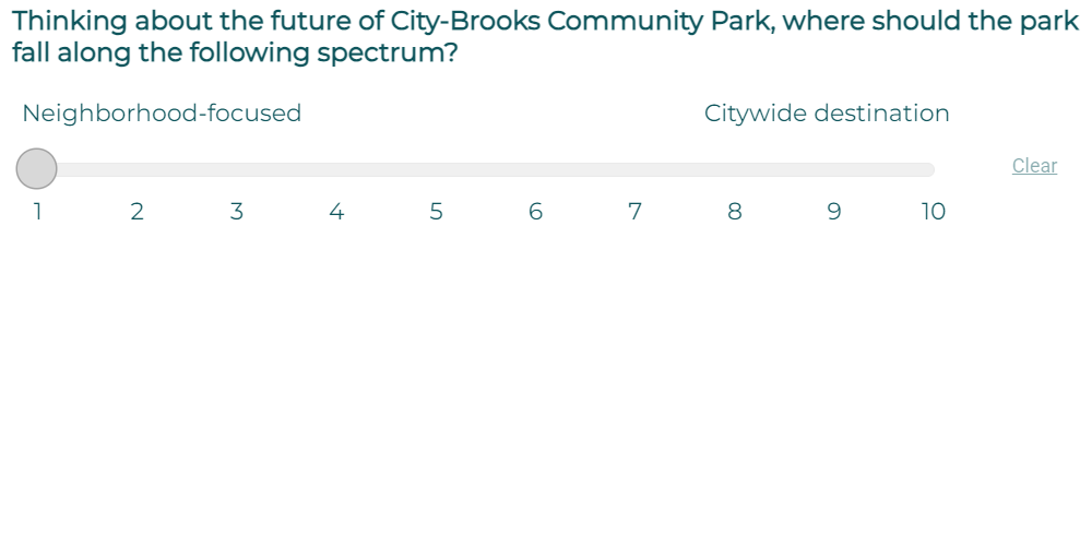 We strongly advise to select "1" on the slider to "Keep the park Neighborhood focused". The city-wide option is a ploy to claim the pubic want a central park so BREC has an excuse to close the golf course.